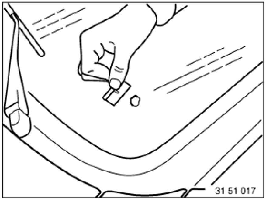 Note: Heat vehicle to room temperature ( > 20° C ), if necessary, heating windshield from inside.