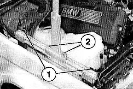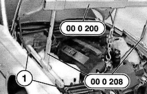 Note: The supports (1) of special tool 00 0 208 must rest on the bolt connection of both side walls.