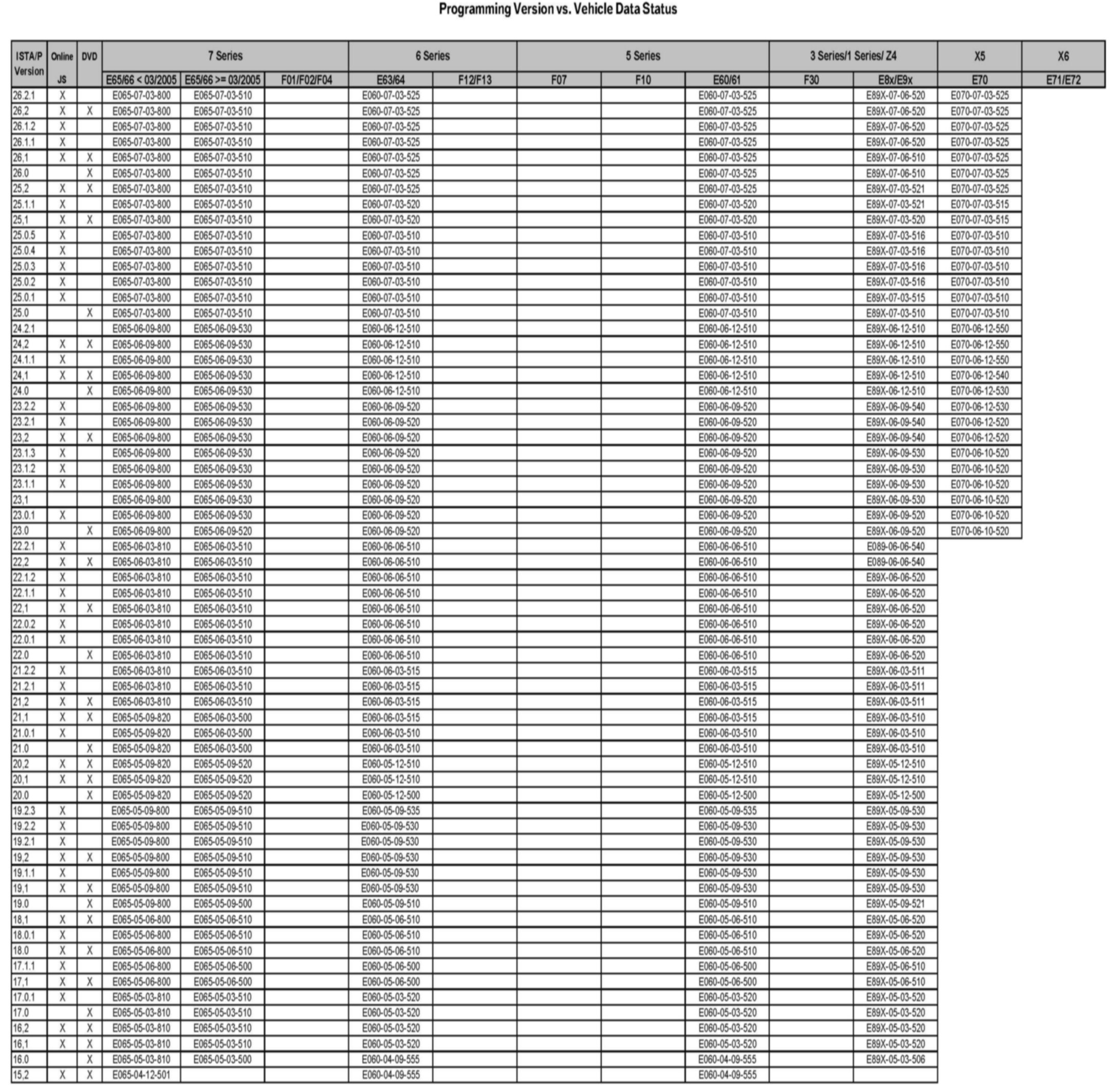 To compare the Vehicle Data Status against with the ISTA/P version, refer to the [NEW] attachment or the 3g Technology website on Centernet. For future ISTA/P releases, the attachment will only be posted on the 3g Technology website in Centernet.