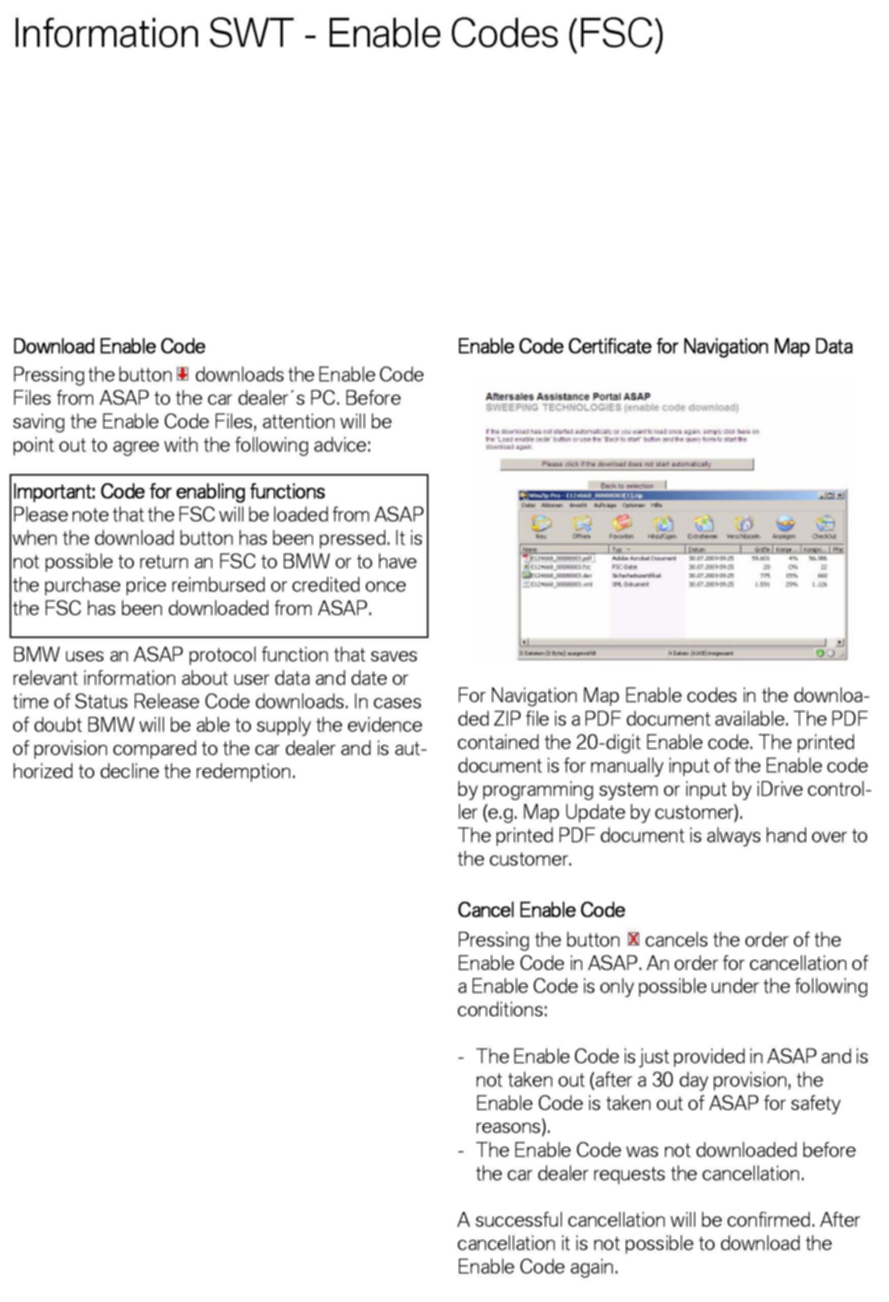 Enabling Codes are needed for certain module replacements, retrofits, crashed modules or during the QC1 Pre-Delivery Check. This bulletin gives a general overview of Enabling Codes, which parts are affected, and how to load and activate Enabling Codes.