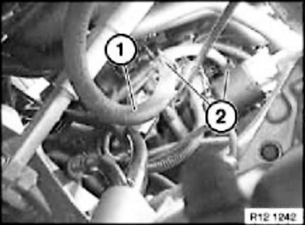 Unclip fuel line (1) from holders (2).