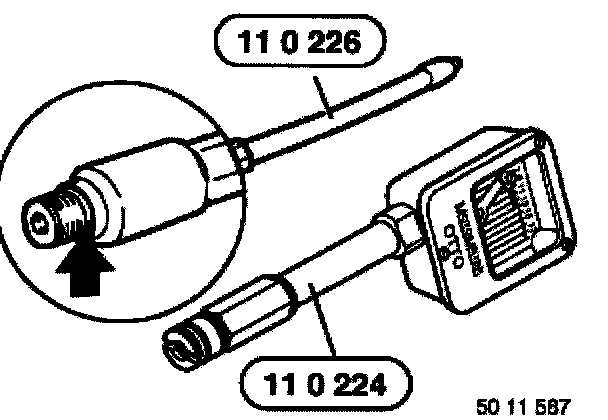Screw special tool 11 0 226 by hand into spark plug thread and connect special tool 11 0 224.