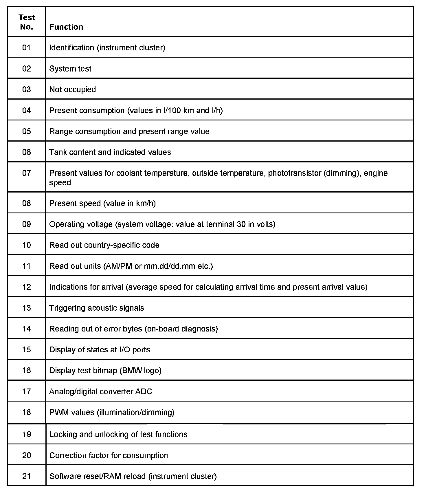 The instrument cluster is a diagnostic compatible system. Diagnosis and reading out of the fault memory in the instrument cluster are possible with the MoDiC or DISplus via the K-CAN SYSTEM data bus. The instrument cluster also has test functions, which are read out in its display.