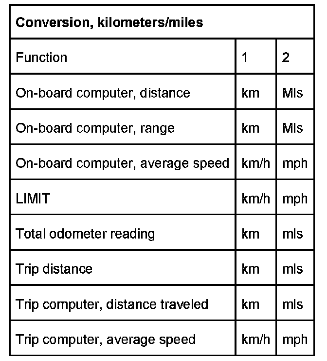 Units: The following units are stored in the instrument cluster:
