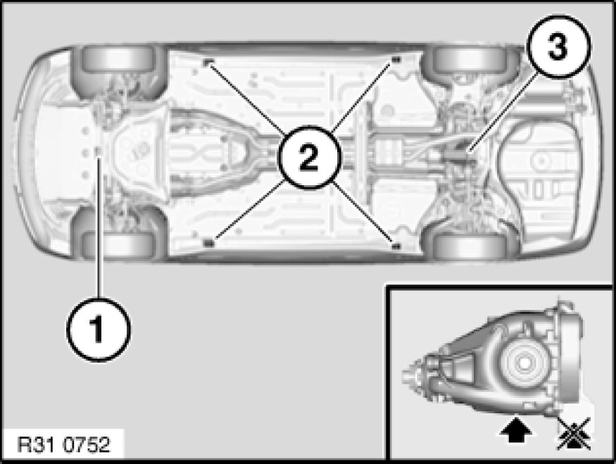 1. Use only BMW-distributed/approved trolley jacks which have rubber plate contact points.