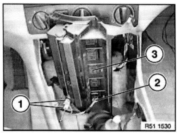 Disconnect plug connections (1) and (2) and remove function carrier for switch center (3).