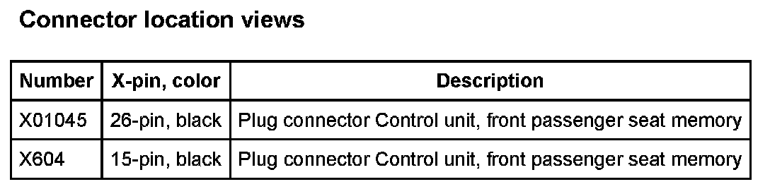 A20 Control Unit, Front Passenger Seat Memory