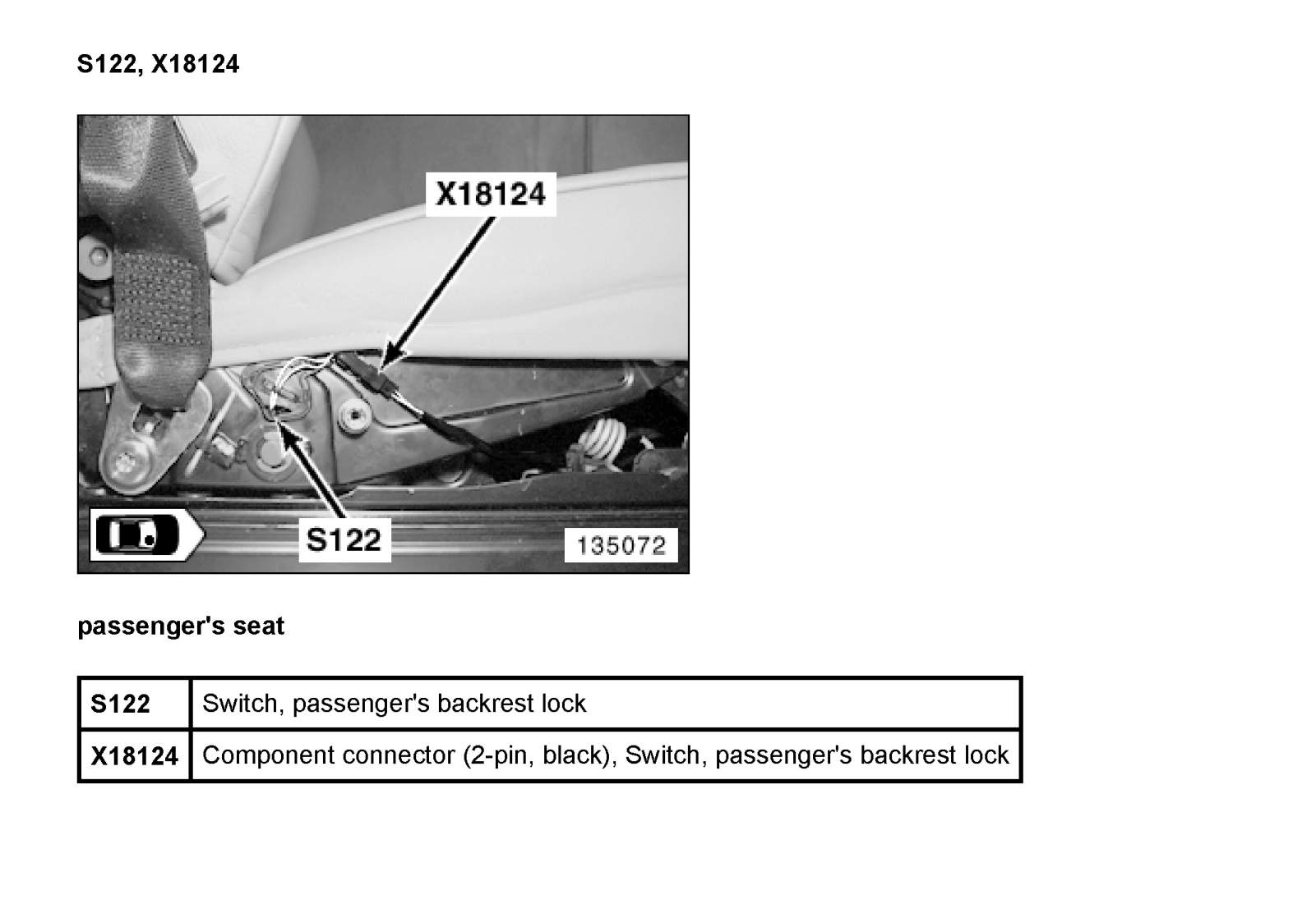 S122 Switch, Passenger's Backrest Lock