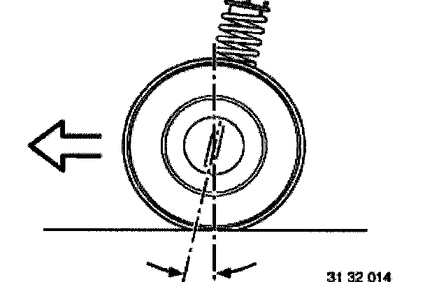 Thanks to caster, wheels are pulled and not pushed. In a similar manner to king-pin inclination, when driving in curves or around corners, returning forces are reproduced to help return wheels to straight-ahead position.