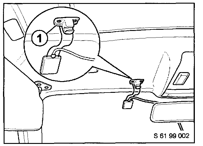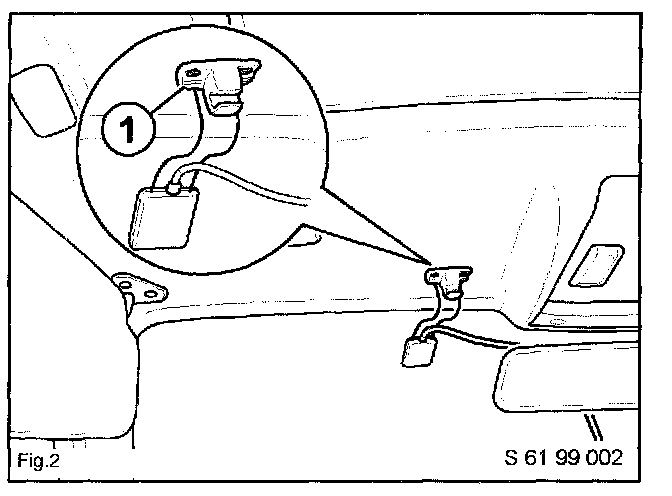The magnetic sensor with connecting cable is installed inside the vehicle and attached to the drivers sun visor bracket mounting points (1).