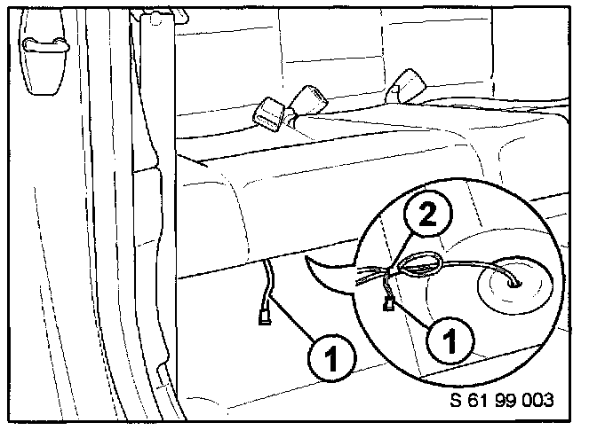 3. Disconnect the 3-pin plug connector (1) between the electronic switch and the harness connector of the signal line. The signal line wiring remains in the vehicle and the connector should be taped back to prevent rattles.