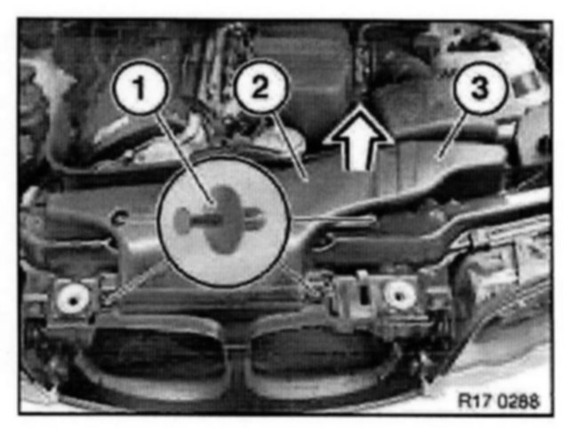 Install guide rail (1) on intake filter housing on rubber mount (2).