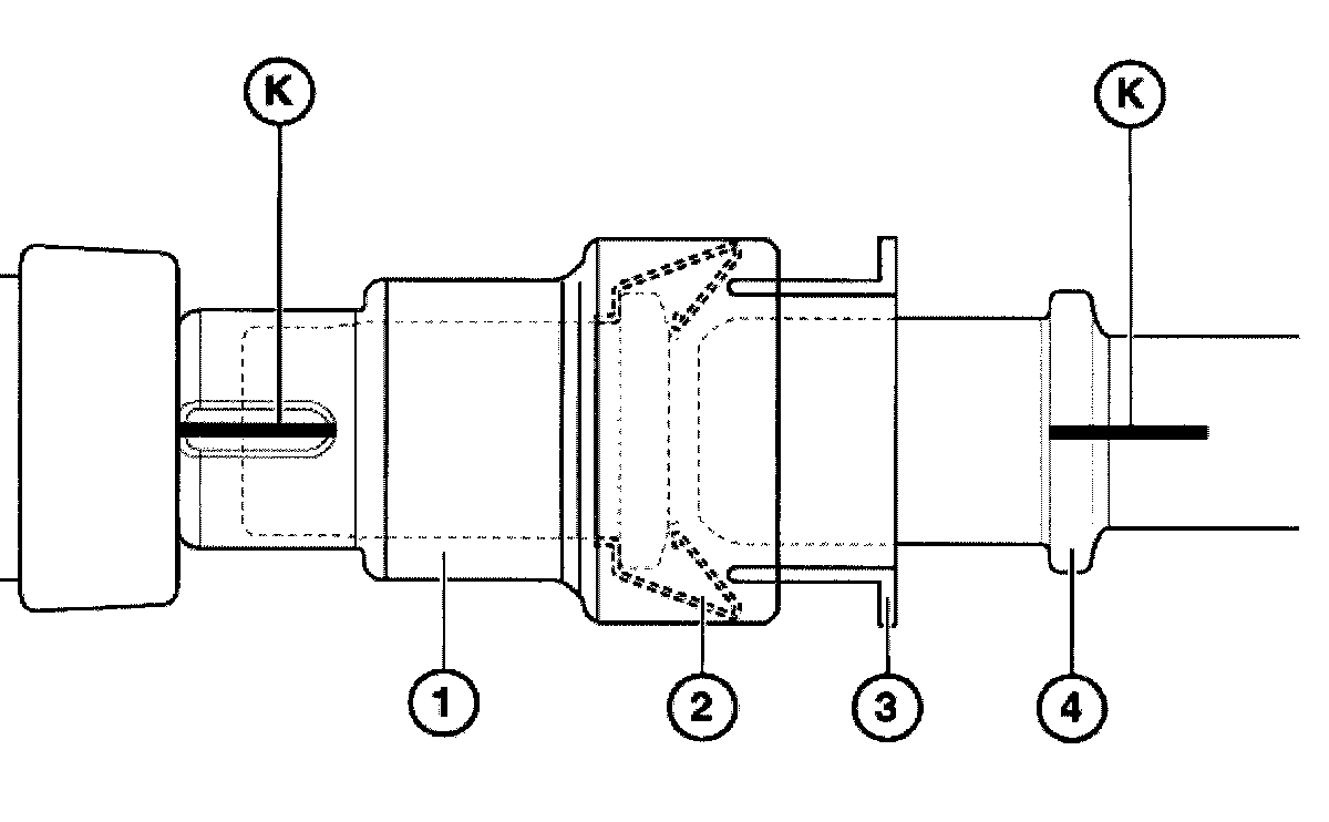 Markings (K) on coupling (1) and pipe (4) must be flush.