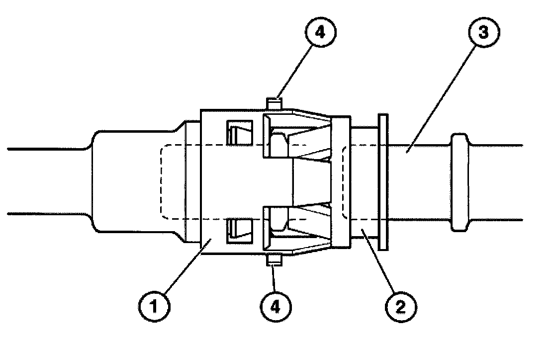 To check that quick-release coupling (1) has been correctly fitted, feel indication pins (4) at outside diameter of housing. When correctly seated, indication pins (4) cannot be pressed into housing.