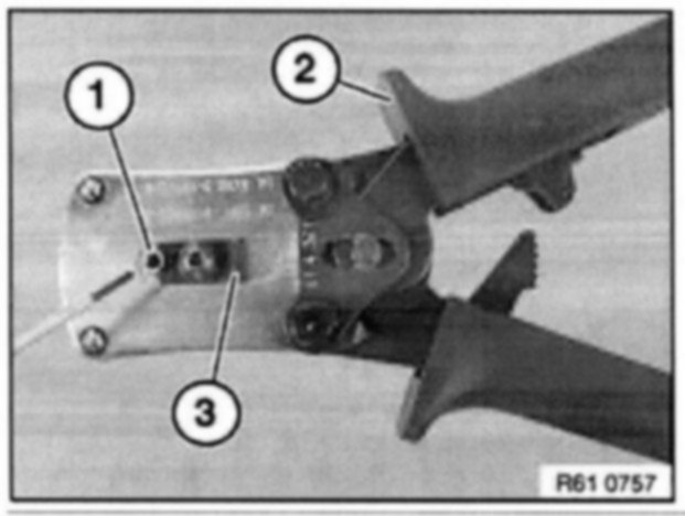 To crimp optical fibers, use pliers 61 4 321(1) in conjunction with crimping head 61 4 323 (2) from crimping set 61 4 320