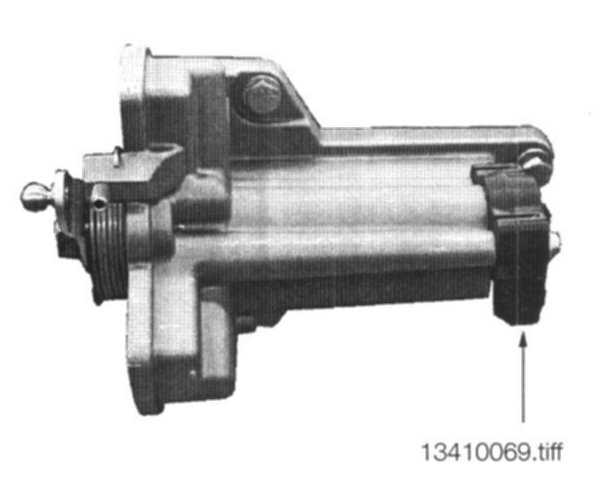 The valve (2) regulates air flow through an external air distribution pipe to the individual throttle housings. The inducted air is shared between the idle actuator and throttle valves depending on the engine load. The maximum air flow of the idle air actuator (80 kg/h) permits emergency operation of the vehicle (limp-home mode).