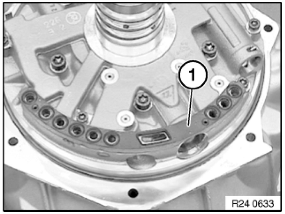 - Pulse gear (1) must be situated below level of sealing surface (2) of transmission housing.