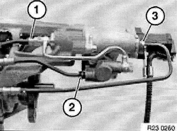 Release union screws (1 ... 3) of hydraulic lines on actuator.