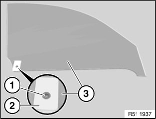 - Rubber ring (1) may be damaged during removal of door window glass.