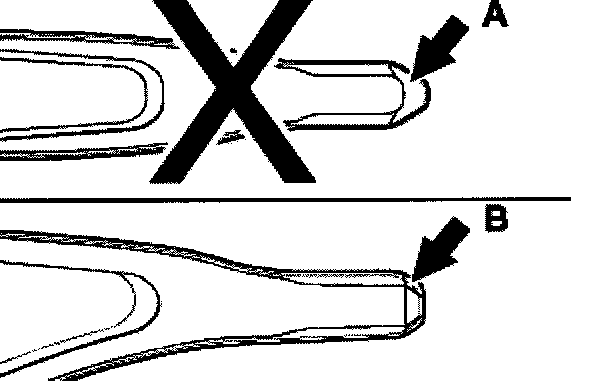 A control arm with pin shape (A) must be replaced! Only control arms with pin shape (B) may be fitted!