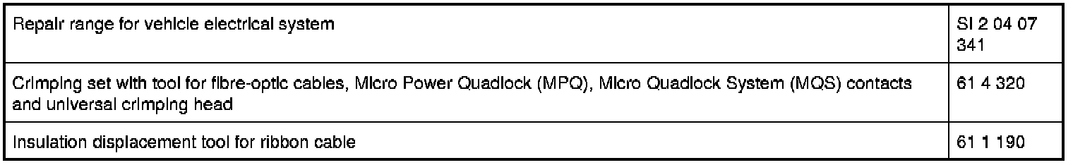 - Special tools for wiring harness repairs Tools and Equipment