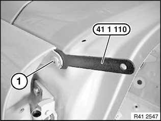 Slacken screw (1) to adjust side panel in relation to A-pillar.