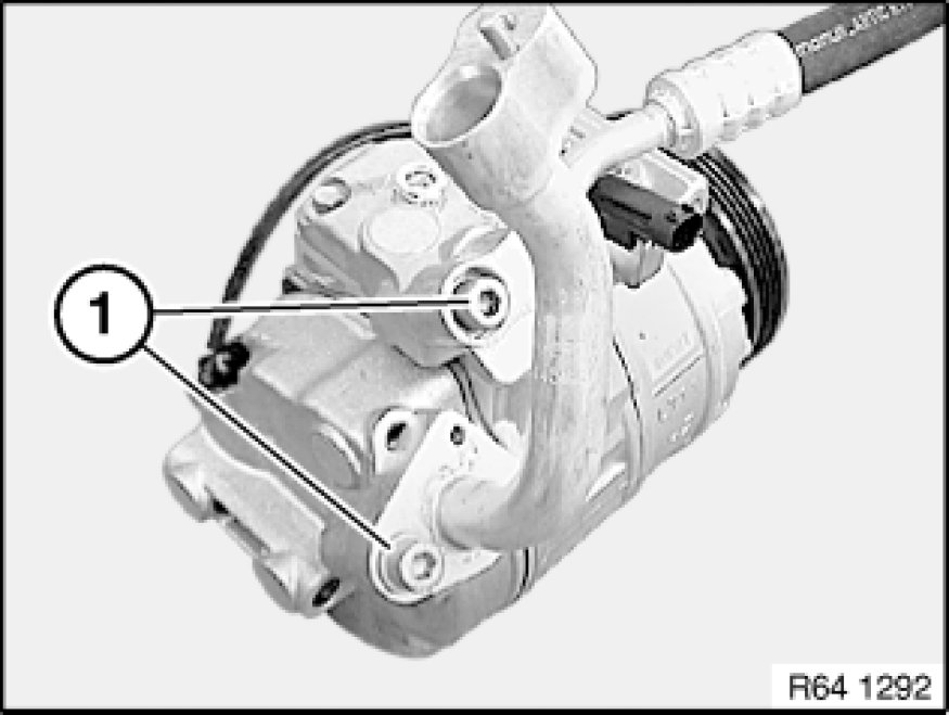 Release bolts (4) and feed out compressor (1) downwards with refrigerant lines.