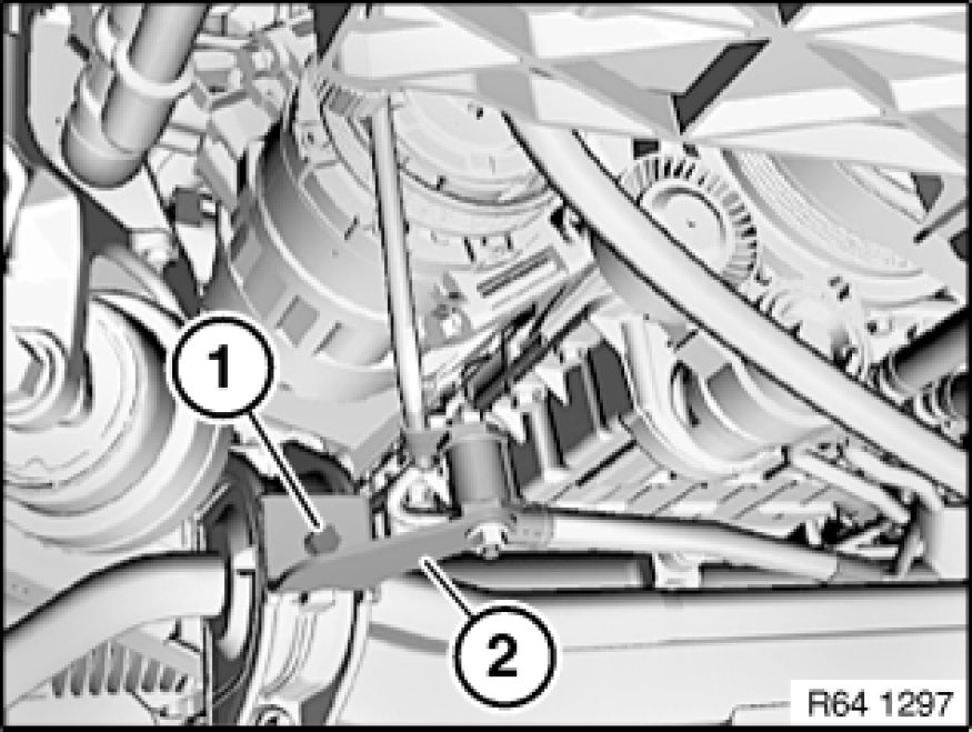 Release bolt (1) and remove bracket for oil lines (2).