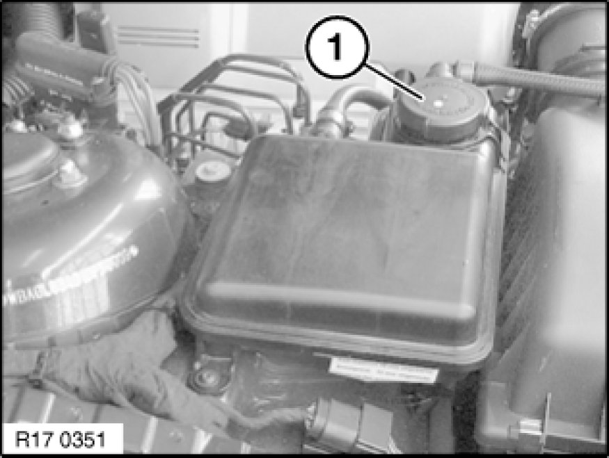 Open cap (1) on coolant expansion tank.