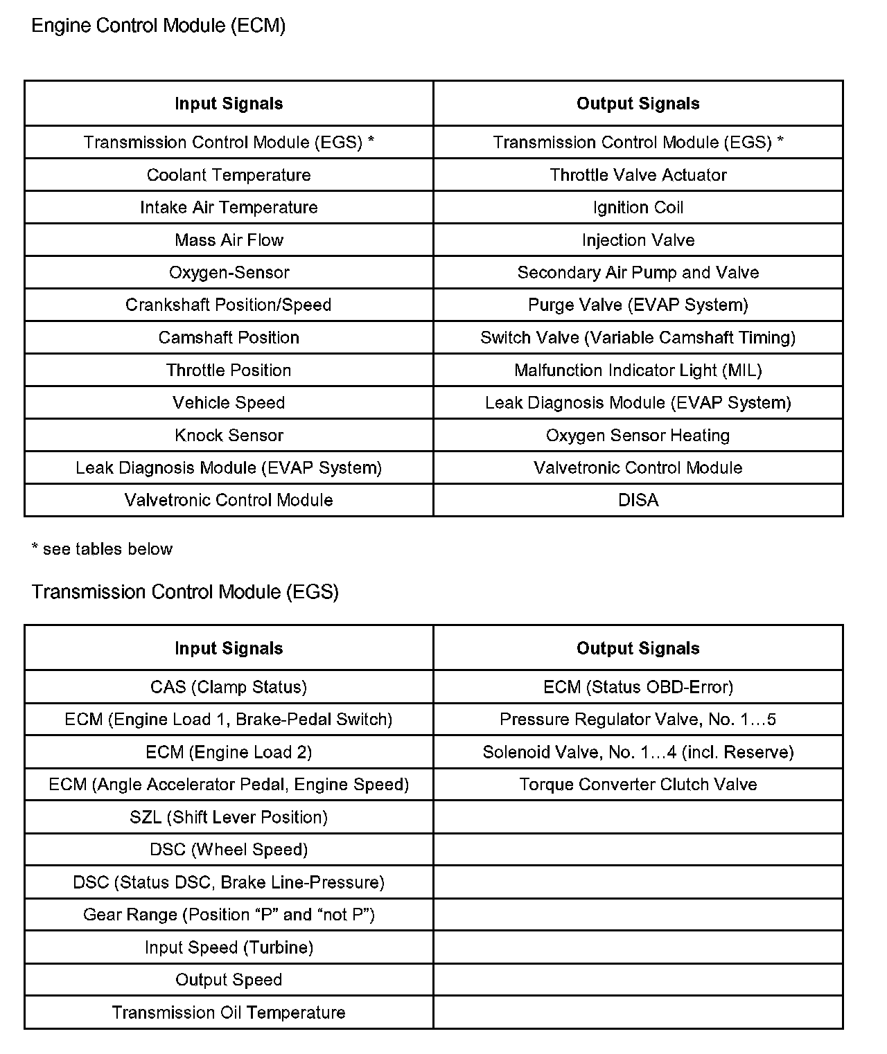 Pinout Values and Diagnostic Parameters