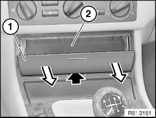 Disconnect plug connections (1) for cigarette lighter and (2) for ASC and remove carrier (3).