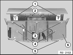 Following components on bottom of glasses compartment (6) must not be damaged: