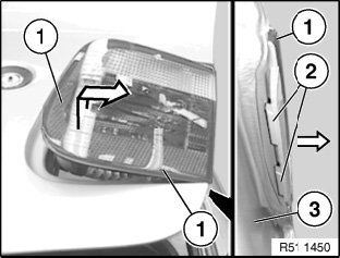 Raise tail light (1) a little and remove with guides (2) facing outwards from trunk lid (3).