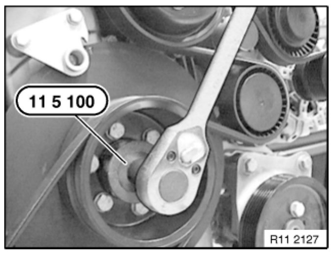 Important! The engine must not be cranked while the VANOS adjustment unit is removed. The toothed shafts may move and slip out of the toothing. The frictional connection of the camshafts will be cancelled, and the valves could be exposed at the piston, or the timing must be readjusted.