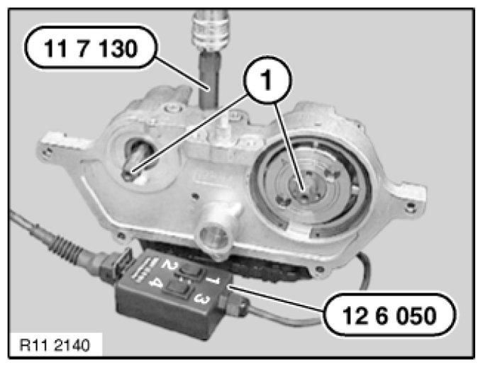 Note: The toothed shafts (1) remain in the VANOS gear on the engine.