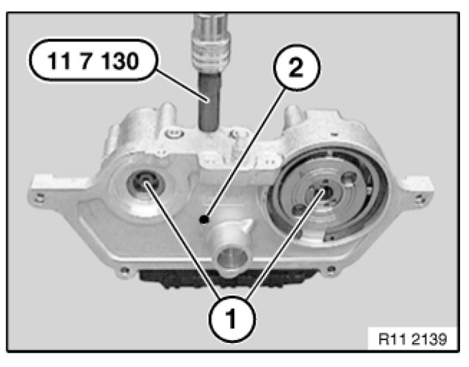 Both radial pistons (1) on VANOS adjustment unit must be retracted (retarded setting).
