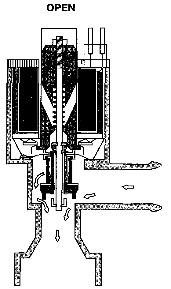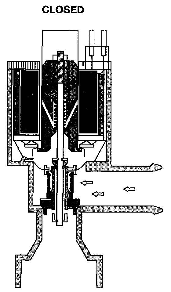 The water valve is electrically actuated. It is located beside the brake booster. It controls coolant flow through the heater core. The valve is powered closed by an electric switch when not powered, it springs open. The valve, when powered closed, prevents hot coolant from entering the heater core, so the air entering the passenger compartment is not heated. When power is removed, the valve springs open, so that hot coolant flows through the heater core and can warm the air entering the passenger compartment.