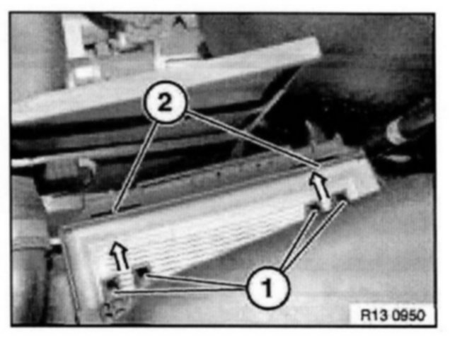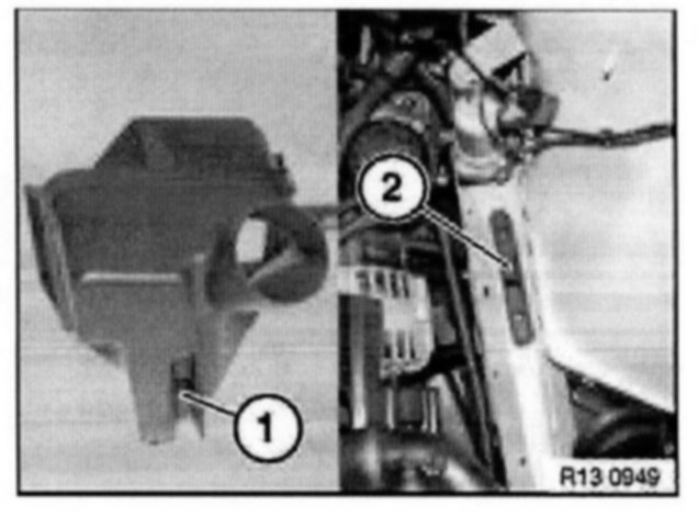 Install guide rail (1) on intake filter housing on rubber mount (2).