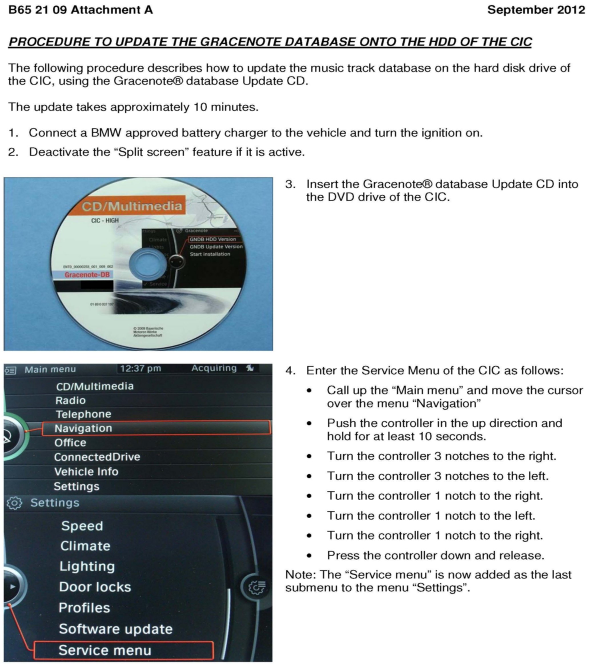 Refer to Attachment A for the procedure to install the Gracenote(R) database Update CD.