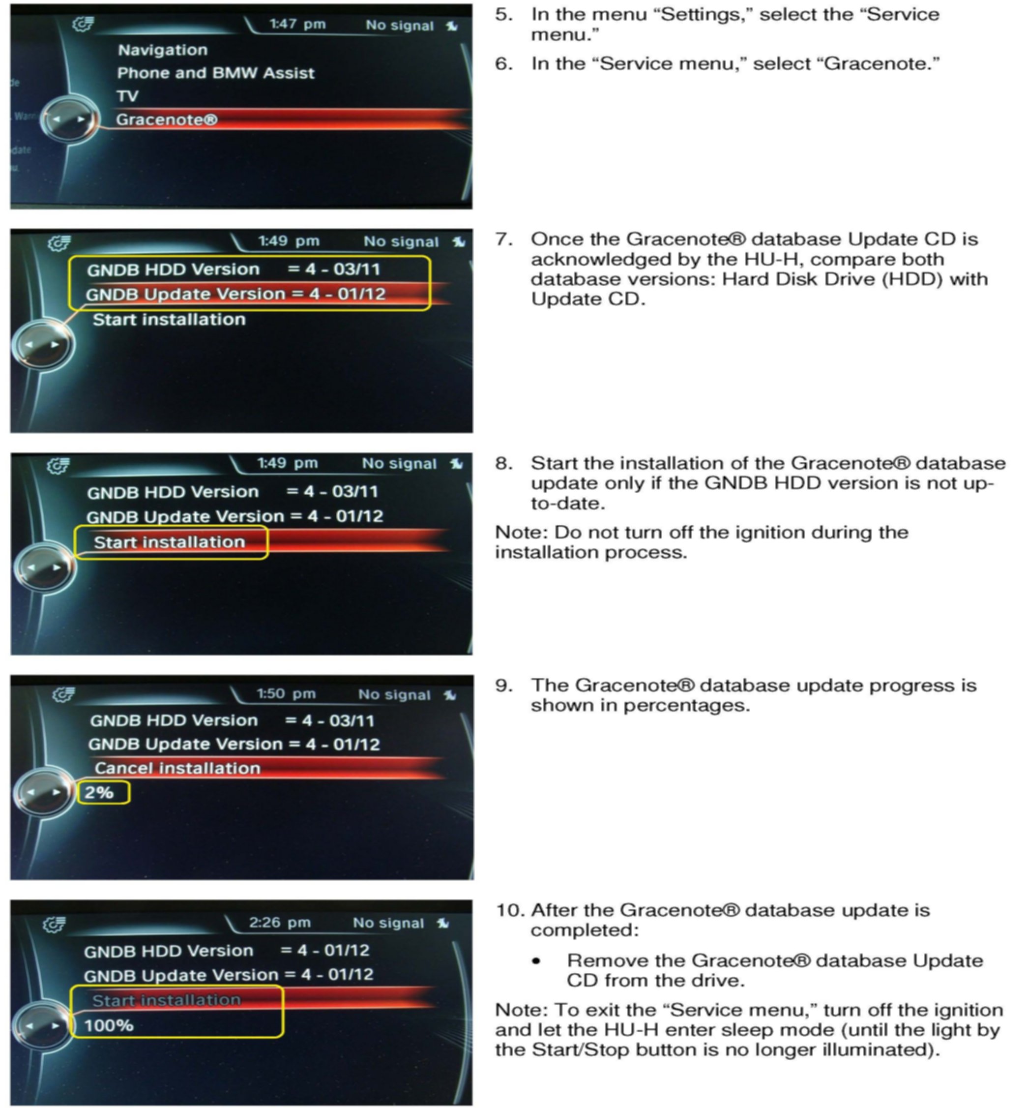 Updating the vehicles Gracenote(R) database to the current version is not covered under BMWs limited warranties.