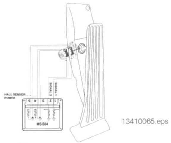 Dual Hall sensors are integral in the accelerator pedal module. The ECM compares the two values for plausibility.