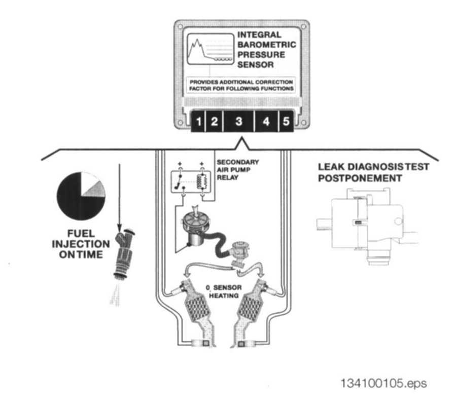- The barometric pressure signal along with calculated air mass provides an additional correction factor to further refine injection "on" time.
