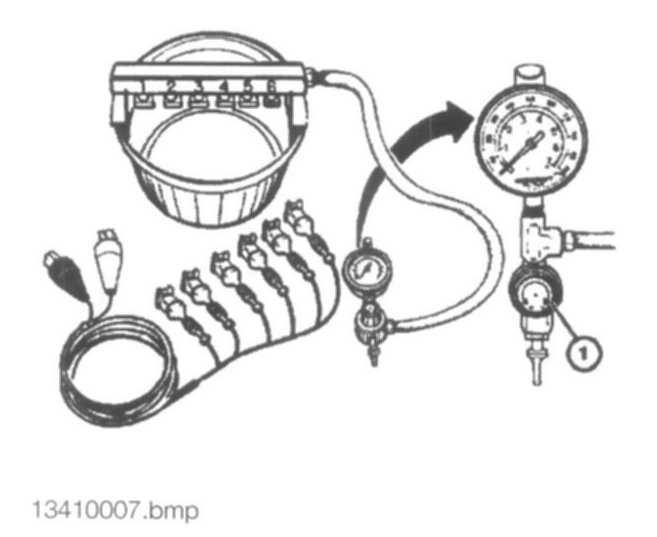 If the 5 bar fuel pressure is not achieved or bleed off is more than 0.5 bar, refer to 13 31 of the Repair instructions for further diagnosis. The Fuel Hose Clamp Tool can be used to isolate bleed off from the pump (non-return check valve) or the pressure regulator (restriction valve). Also verify power supply to the fuel pump.