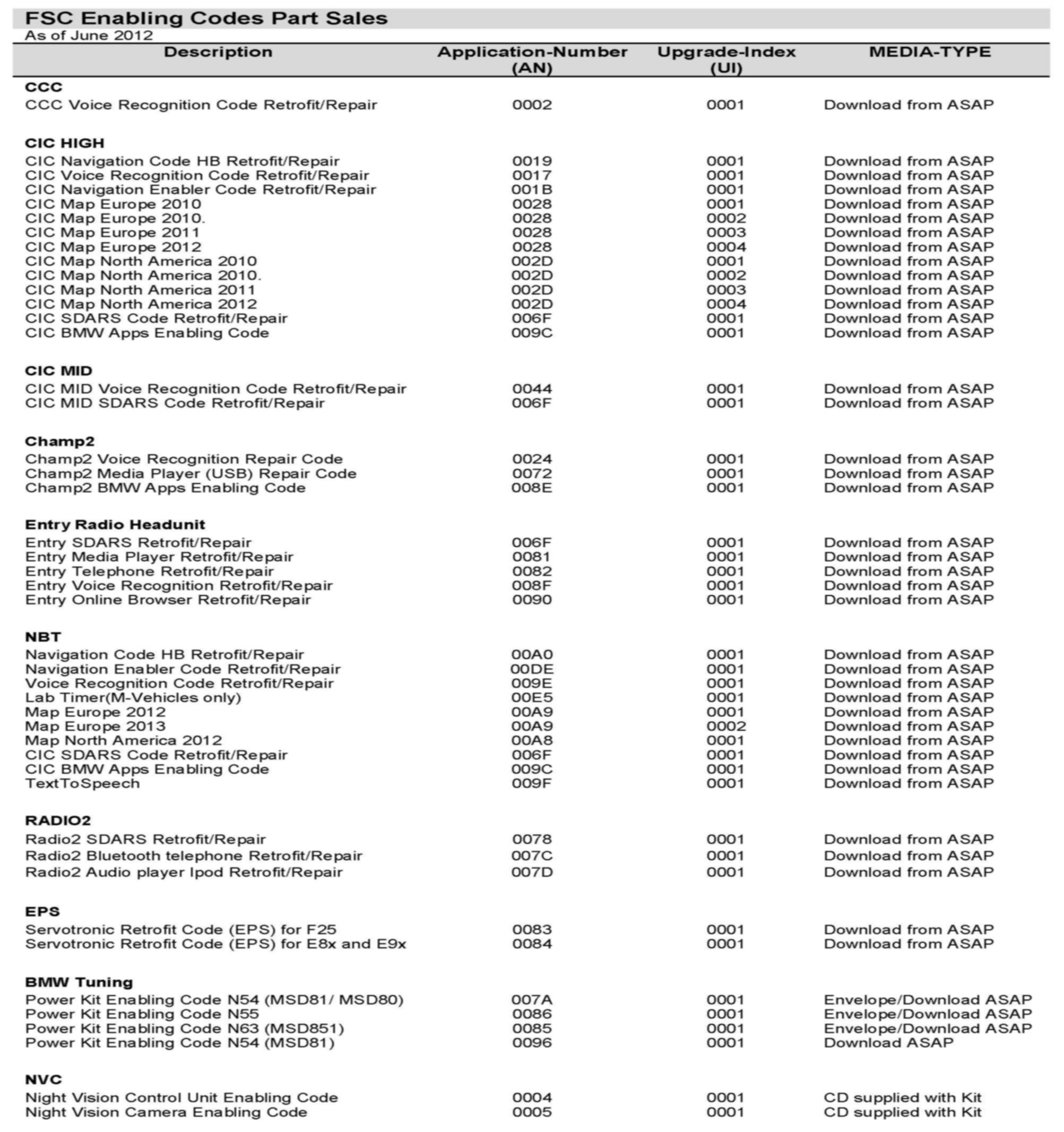 When ISTA/P requests an Enabling Code during a programming session, only an Application ID and Upgrade Index are shown. The [NEW] attached cross-reference will help identify which enabling code is required: