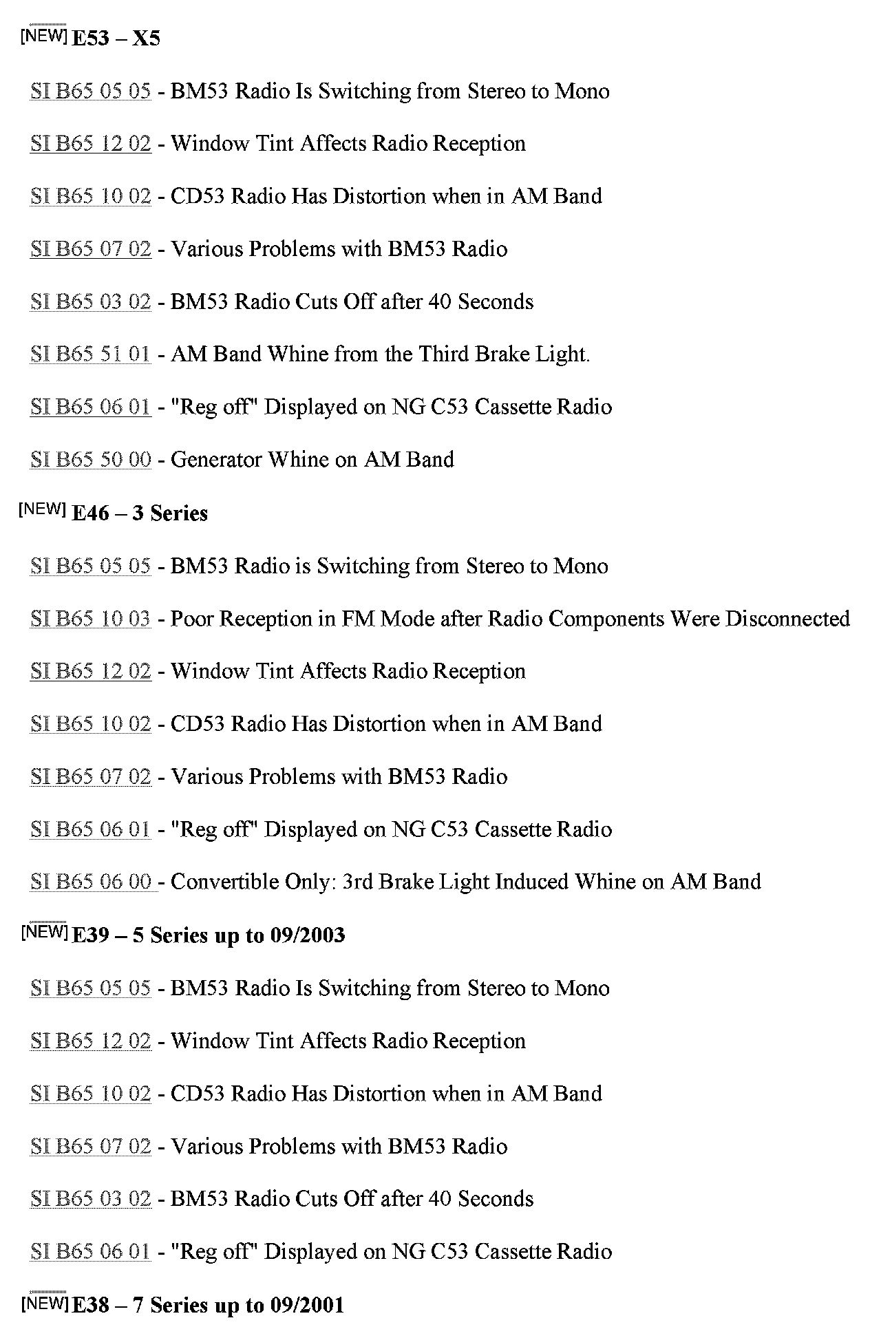^ Defective parts (some addressed by SIBs for specific models and complaints)