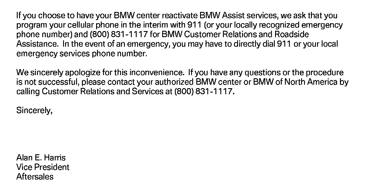 ^ If the customer is NOT an active BMW Assist services client, no further action is required.