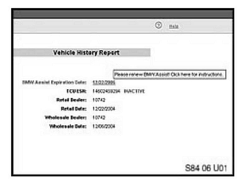 1. Check the BMW Assist account status on DCSnet. The BMW Assist services expiration date and TCU activation status can be checked on DCSnet under Service/Vehicle History Inquiry. Refer to SI B02 01 06 (Updated DCSnet Vehicle History Inquiry information of BMW Assist) for more information.