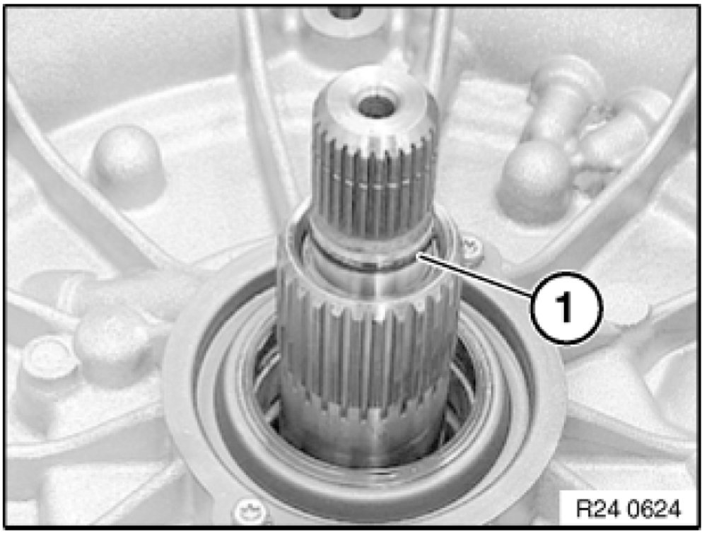 - Pulse gear (1) must be situated below level of sealing surface (2) of transmission housing.