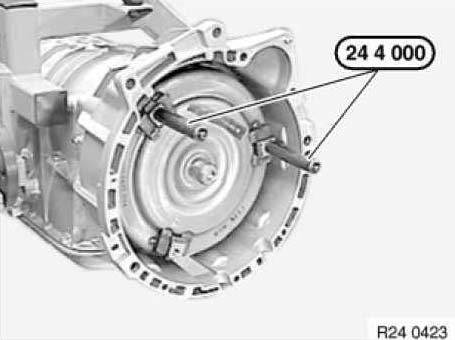 Screw special tool 24 4 000 into torque converter.