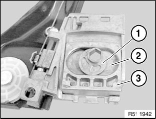 Turn power window motor (2) a little and remove.